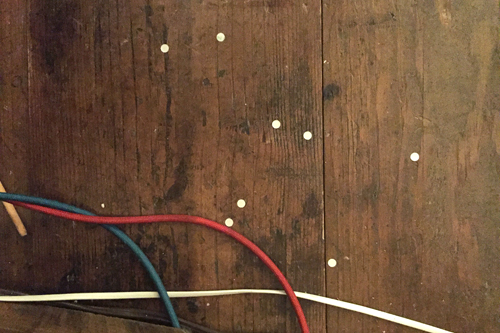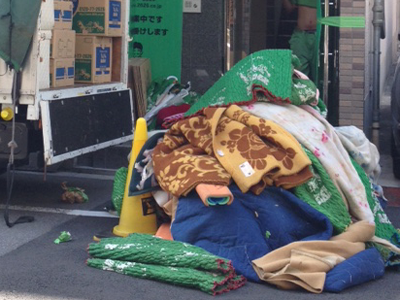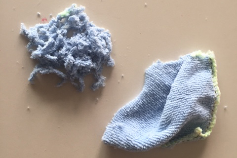 気にせずパンチのゴミを散らかし放題。床もよう。 |