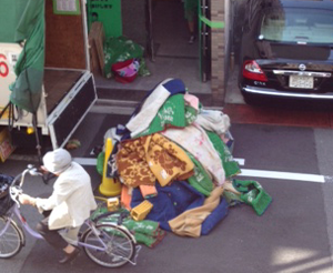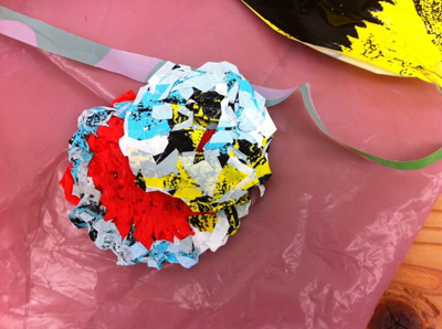 14 April 2013_ had a workshop using wrapping paper, plastic bags ribbon with Satoko Sakamoto and Akemi Tamura in Shodoshima. |