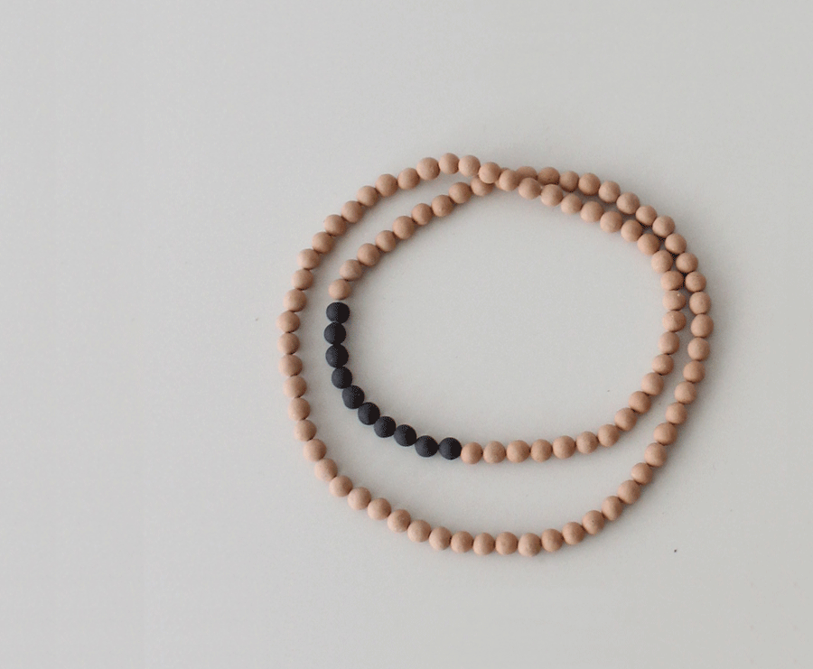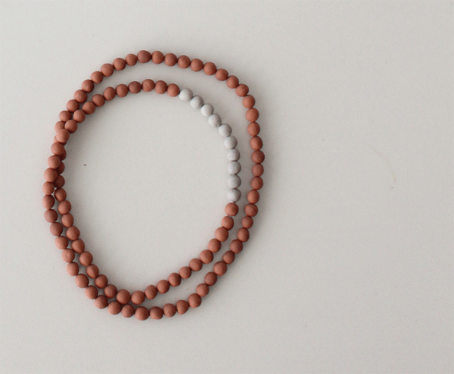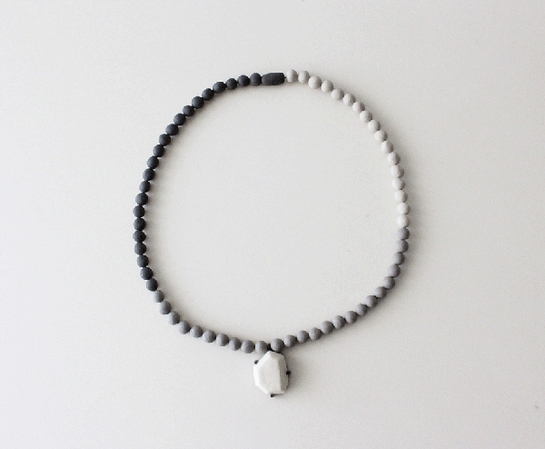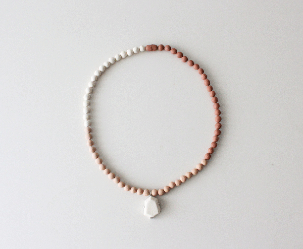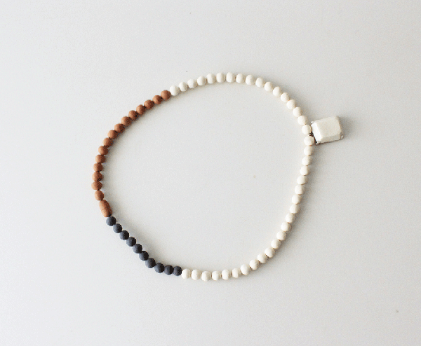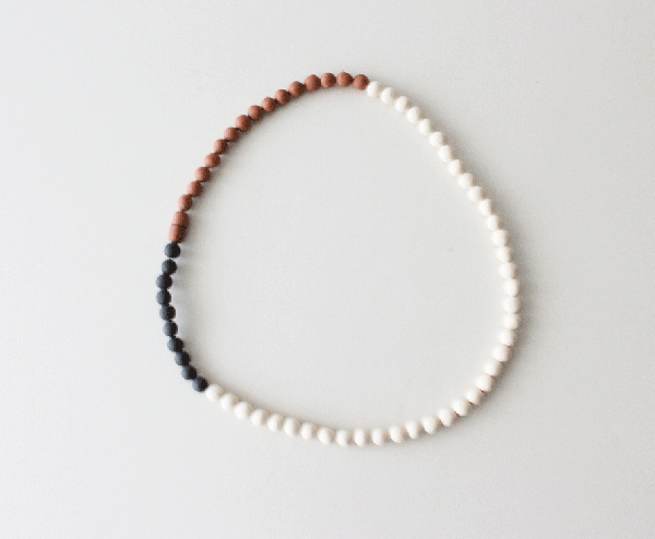土をまぜたりして色を出した陶器のネックレス。
